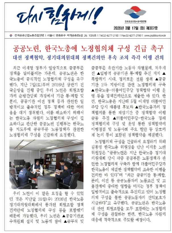 공공노련, 한국노총에 노정협의체 구성 긴급 촉구