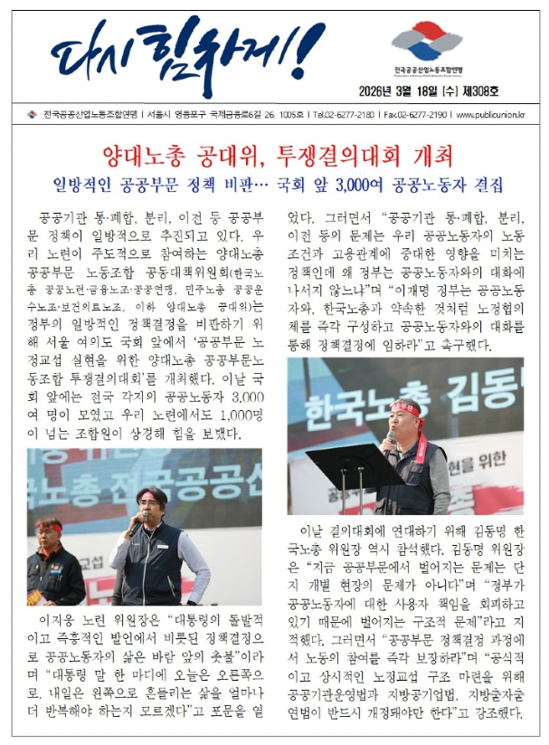 공공노련, 한국노총에 노정협의체 구성 긴급 촉구 2026.03.20