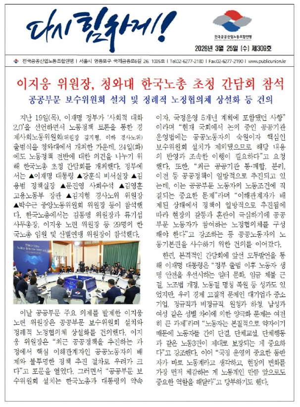 이지웅 위원장, 청와대 한국노총 초청 간담회 참석 > 관련 뉴스/기사